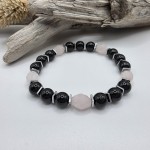Bransoletka damska z kamieni naturalnych - czarny turmalin i kwarc różowy