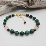 Piękna bransoletka z kamieni naturalnych - malachitu, granatu i cytrynu przeplatanych złotym hematytem: