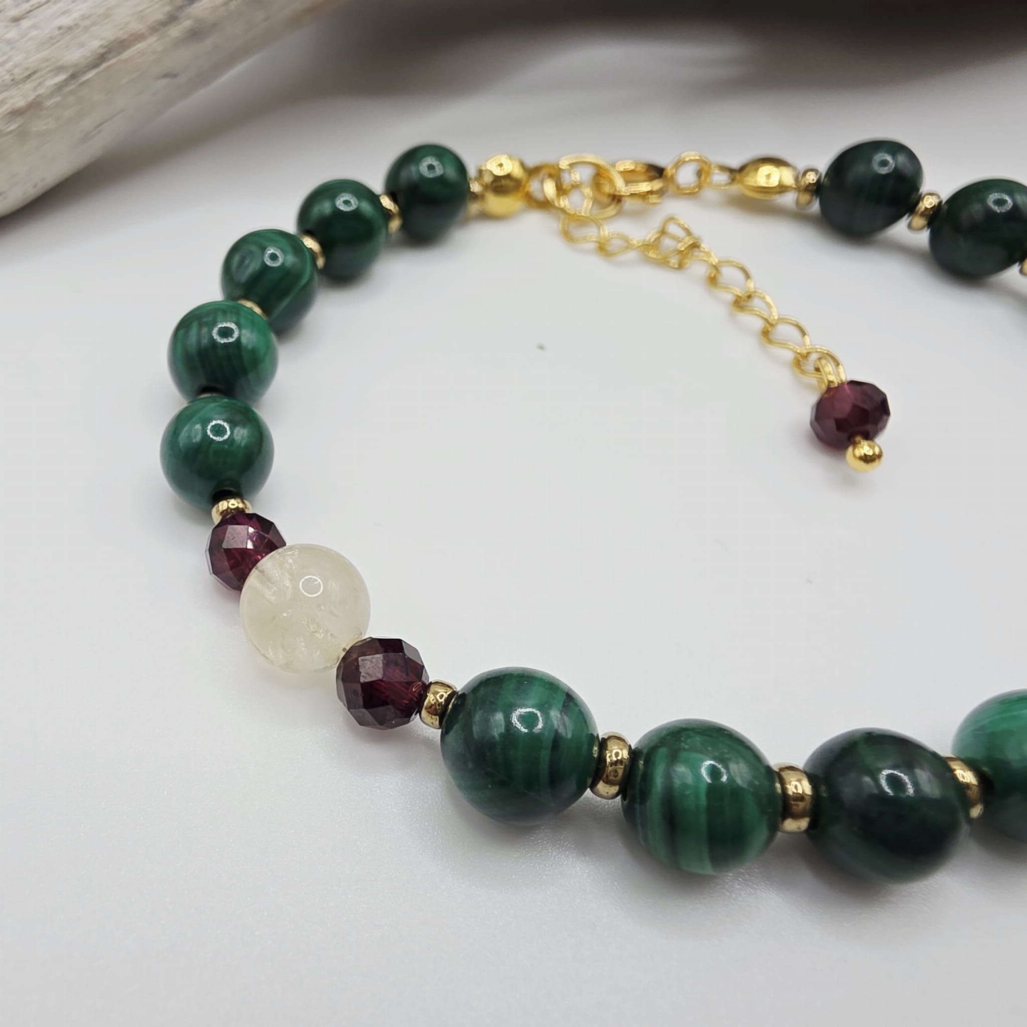 Bransoletka damska z kamieni naturalnych - malachit, granat, cytryn