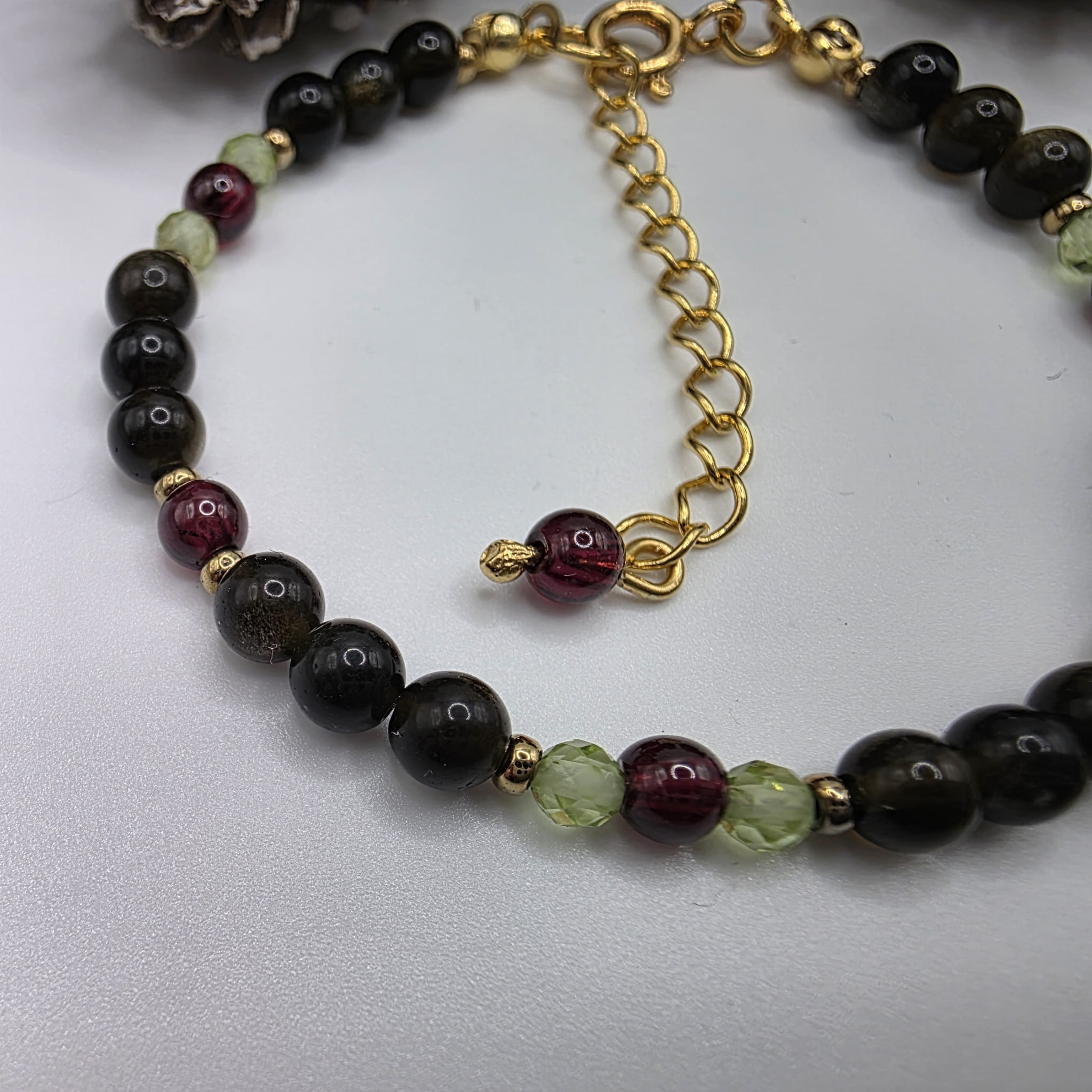 Bransoletka damska z kamieni naturalnych - obsydian, granat, oliwin, hematyt