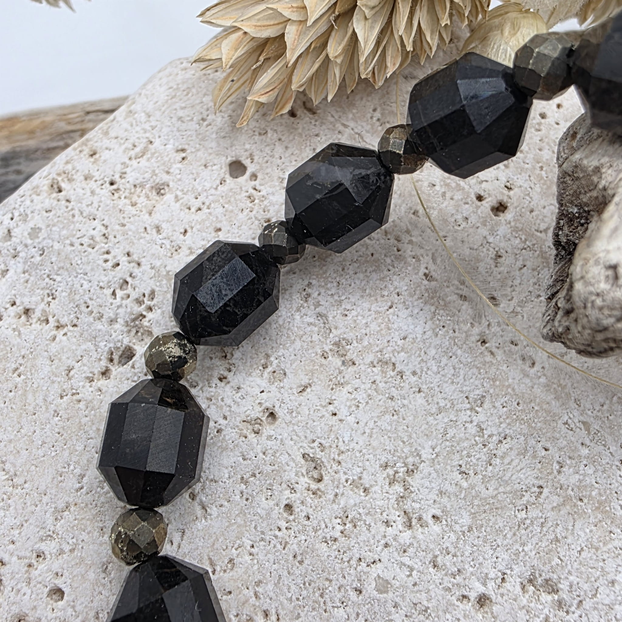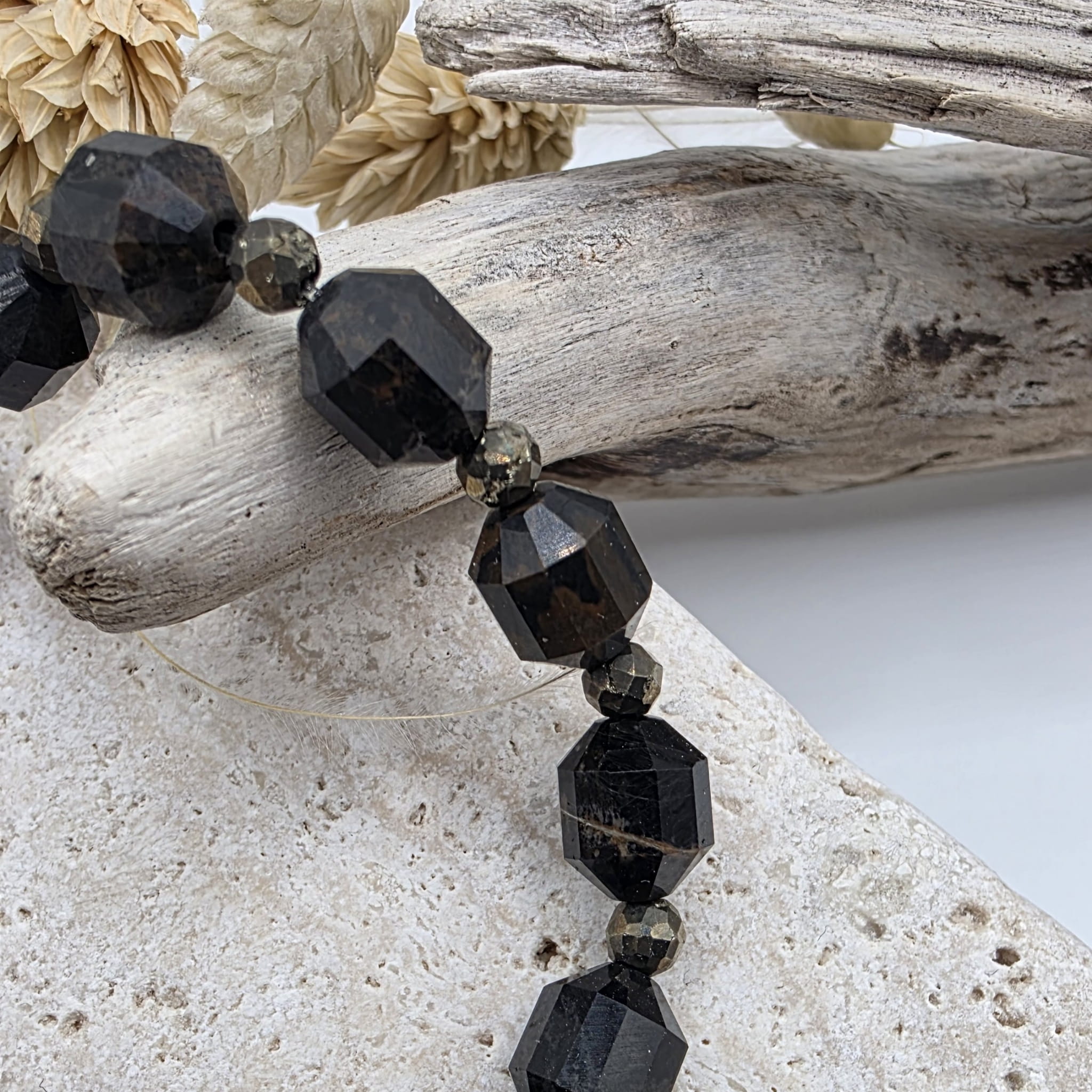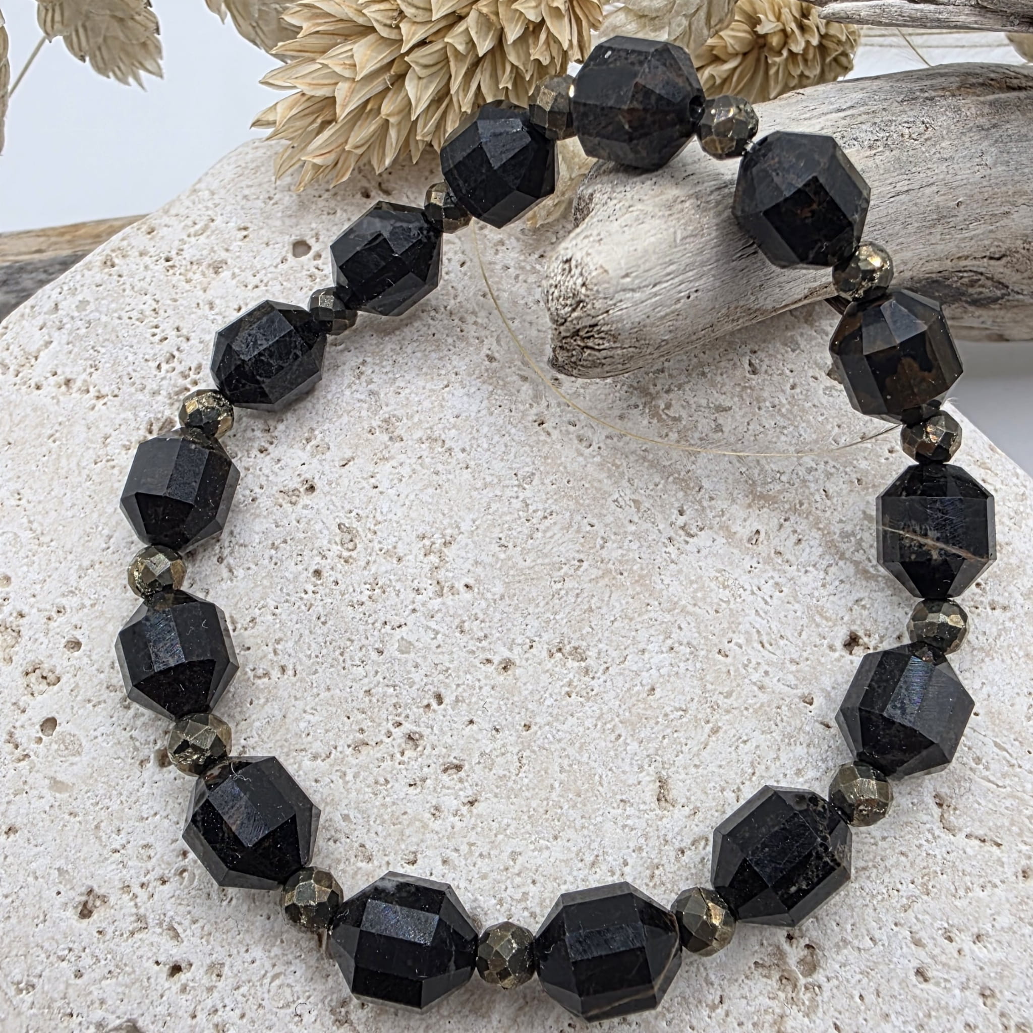 Bransoletka damska ze złocistego obsydianu i pirytu