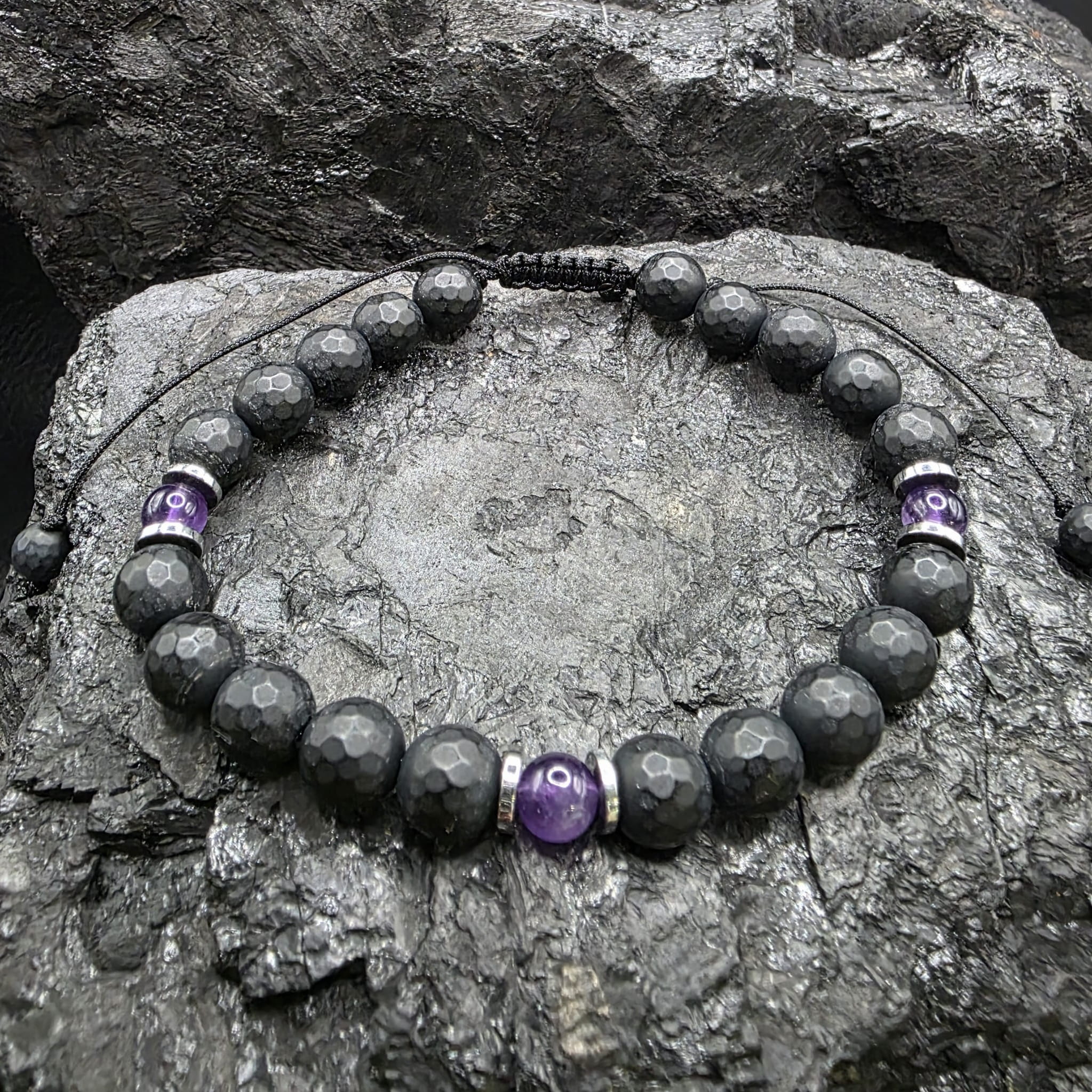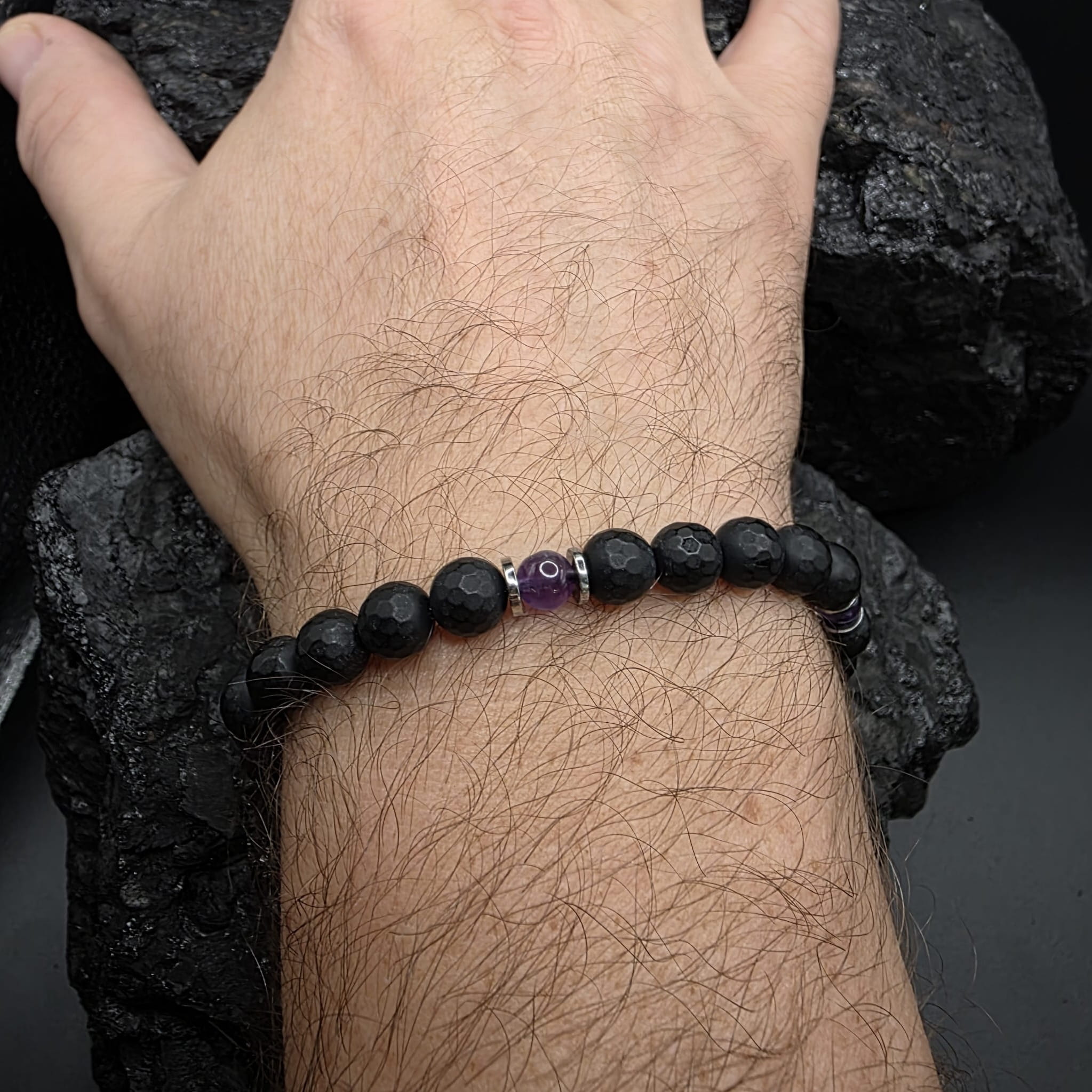 Bransoletka męska z kamieni naturalnych - onyksu, ametystu i hematytu - doskonałe połączenie siły i spokoju: