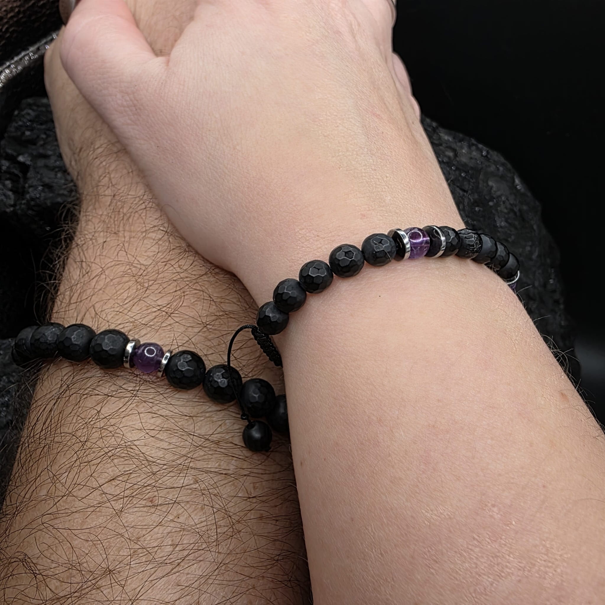 Bransoletka męska z kamieni naturalnych - onyks, ametyst, hematyt
