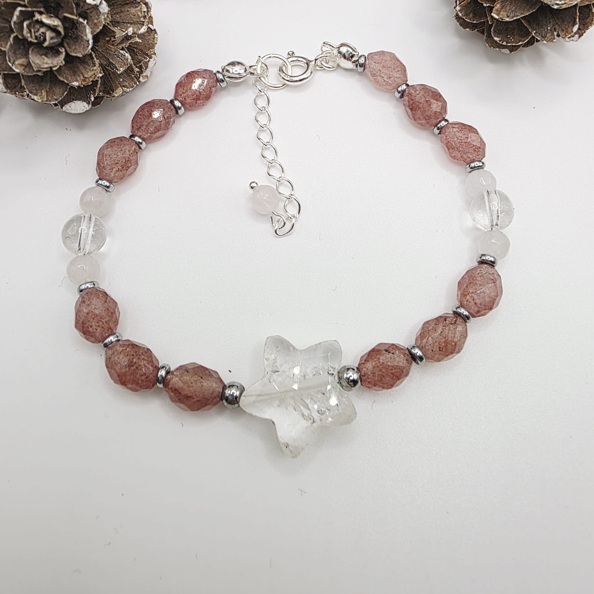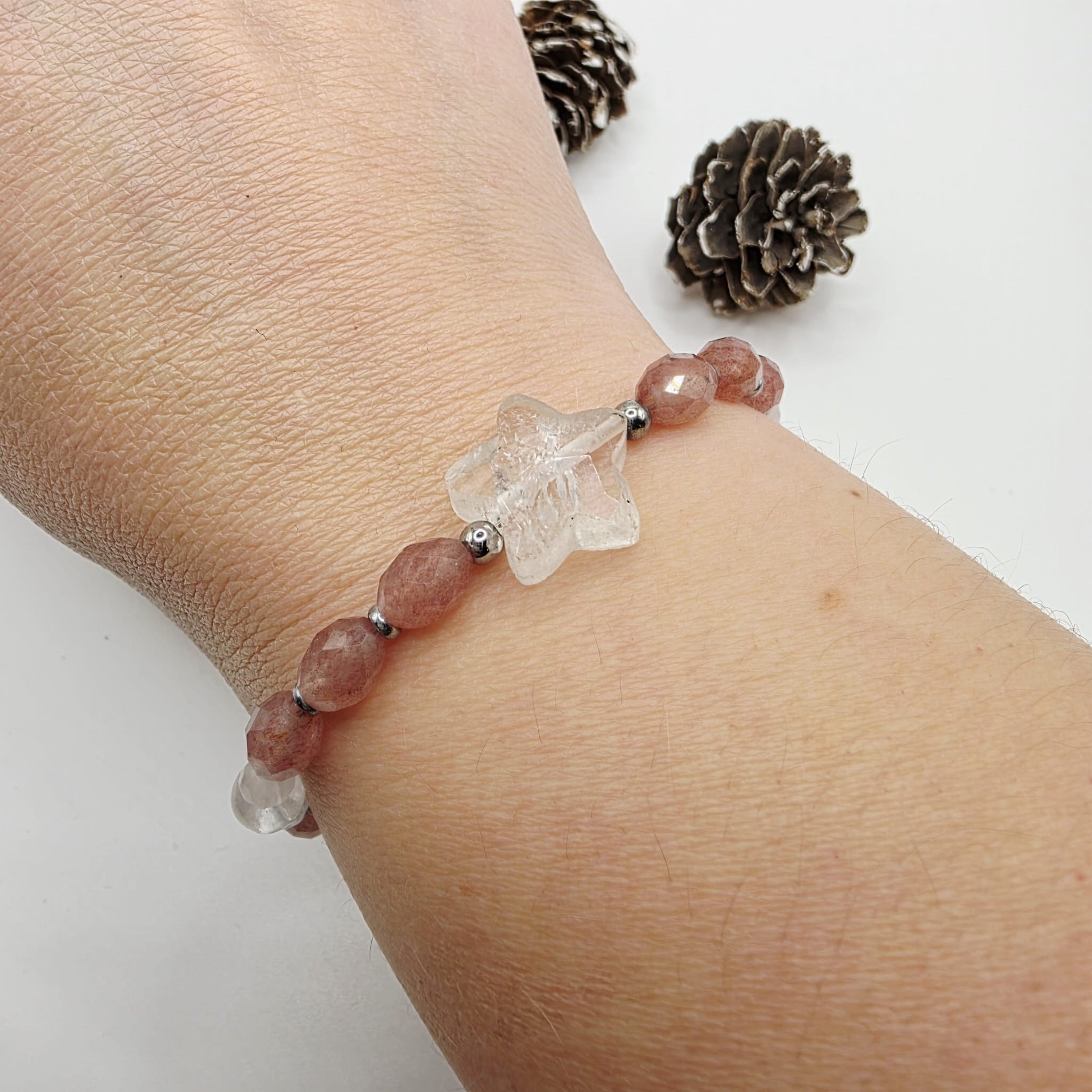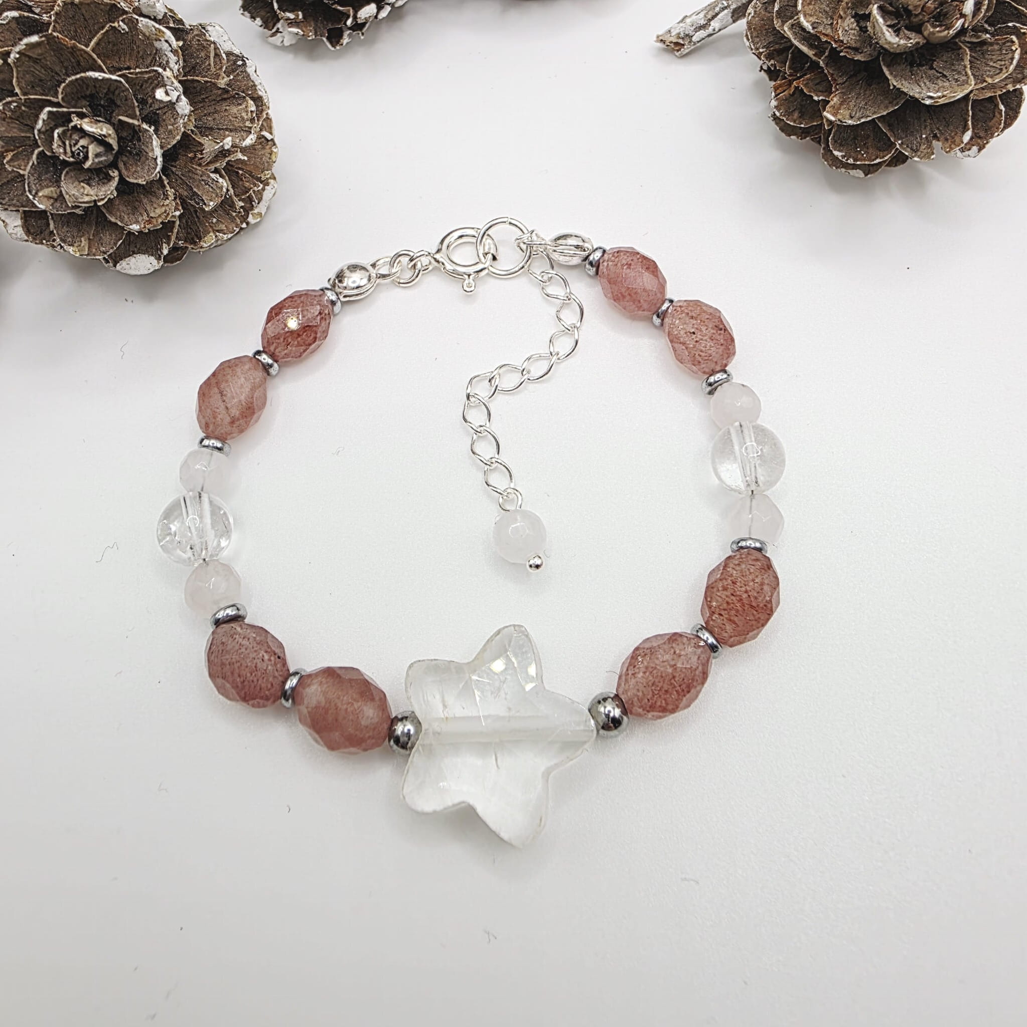 Bransoletka z gwiazdką - kryształ górski, kwarc truskawkowy, kwarc różowy, hematyt