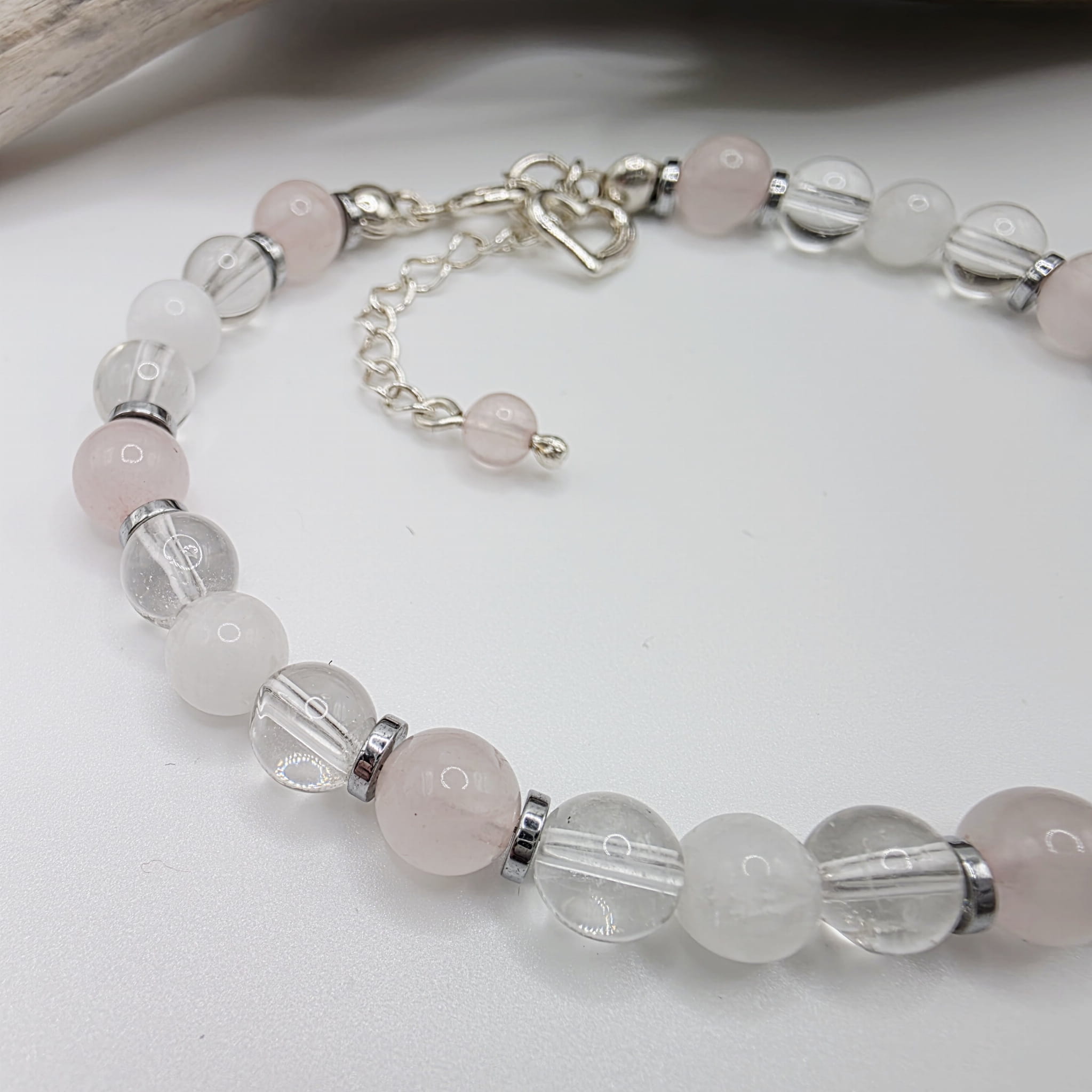 - kwarc różowy - jest kamieniem bezwarunkowej miłości i pojednania; łagodzi emocje, pomaga pokochać siebie i osiągnąć spokój wewnętrzny; wzmacnia empatię, wydobywa czułość