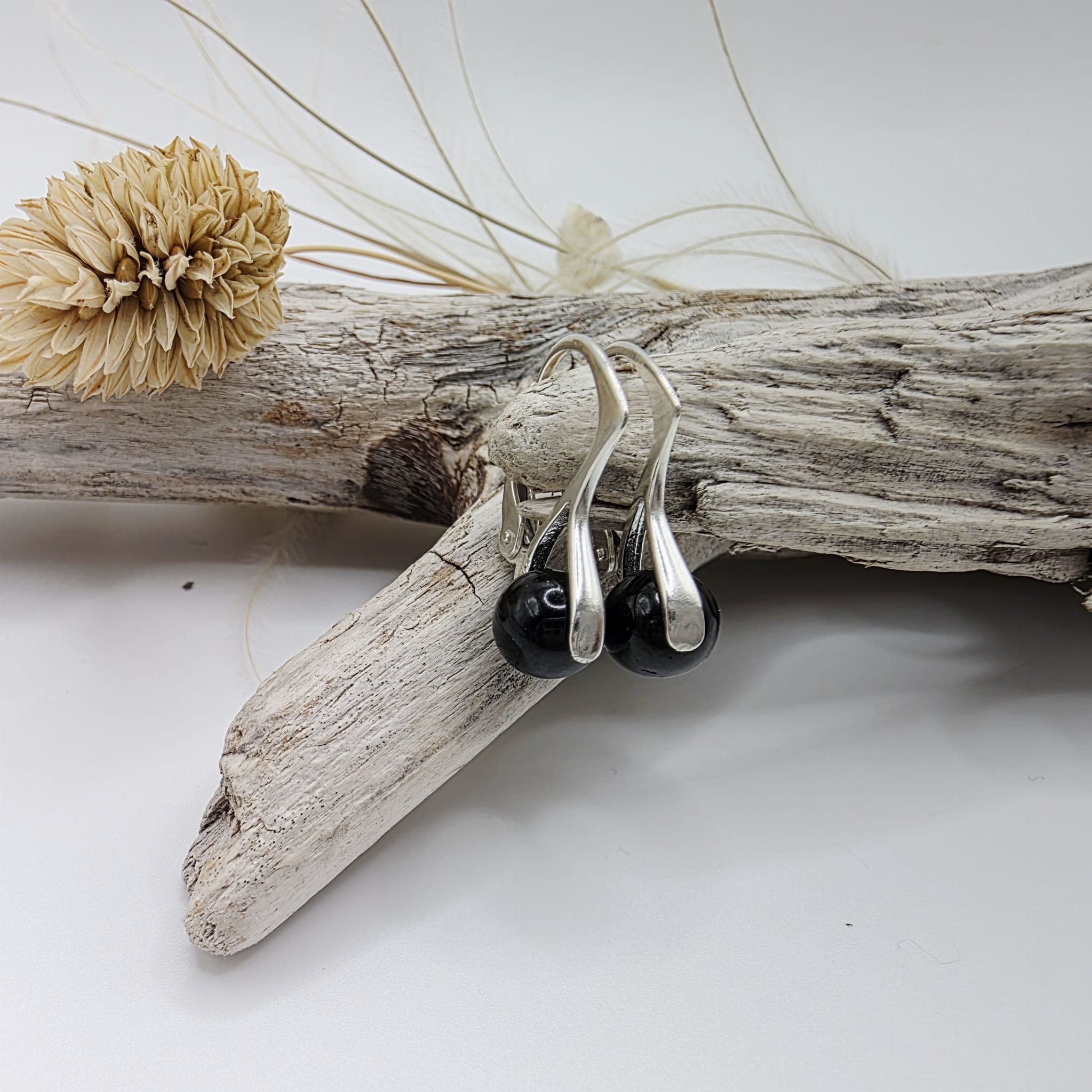Klasyczne kolczyki z czarnym turmalinem