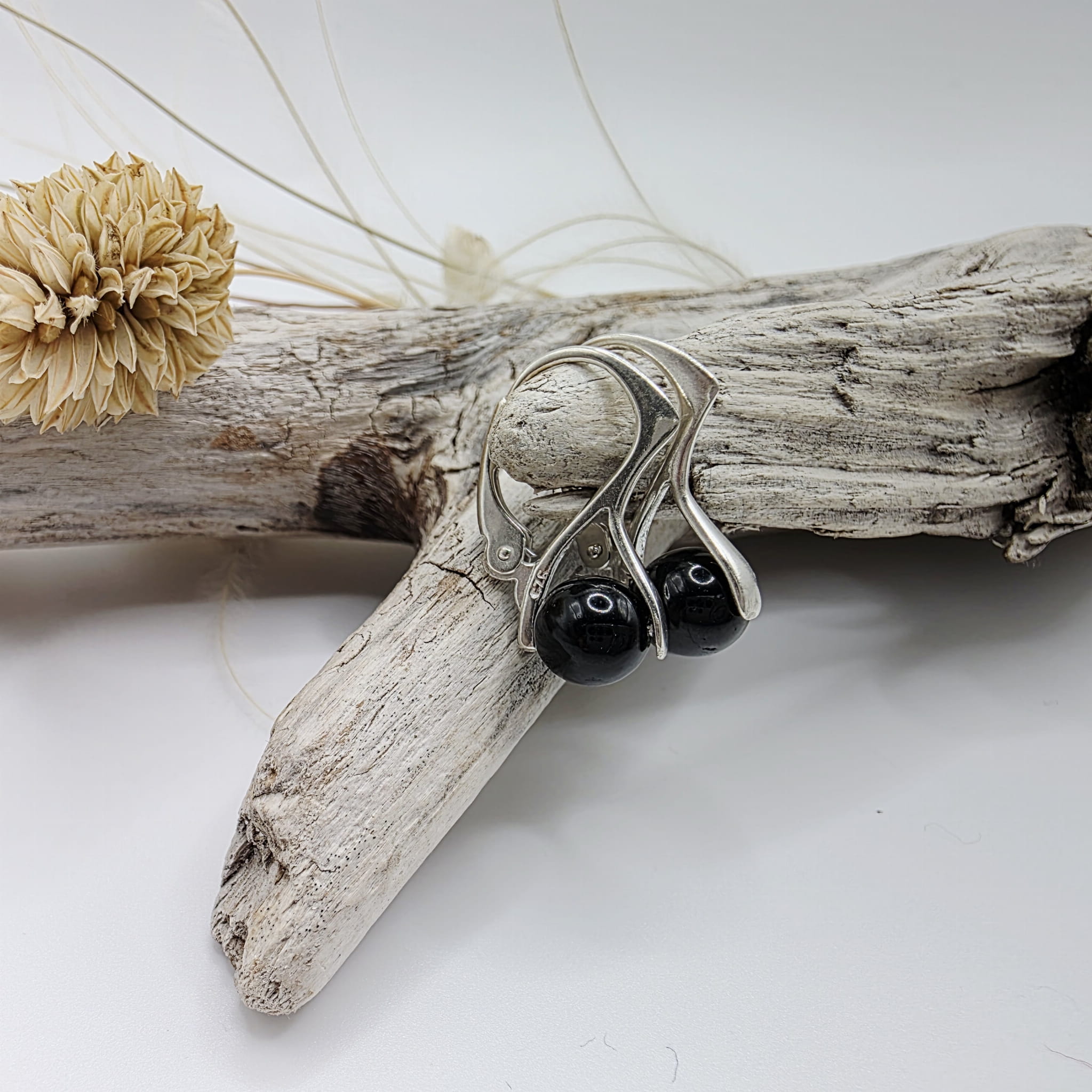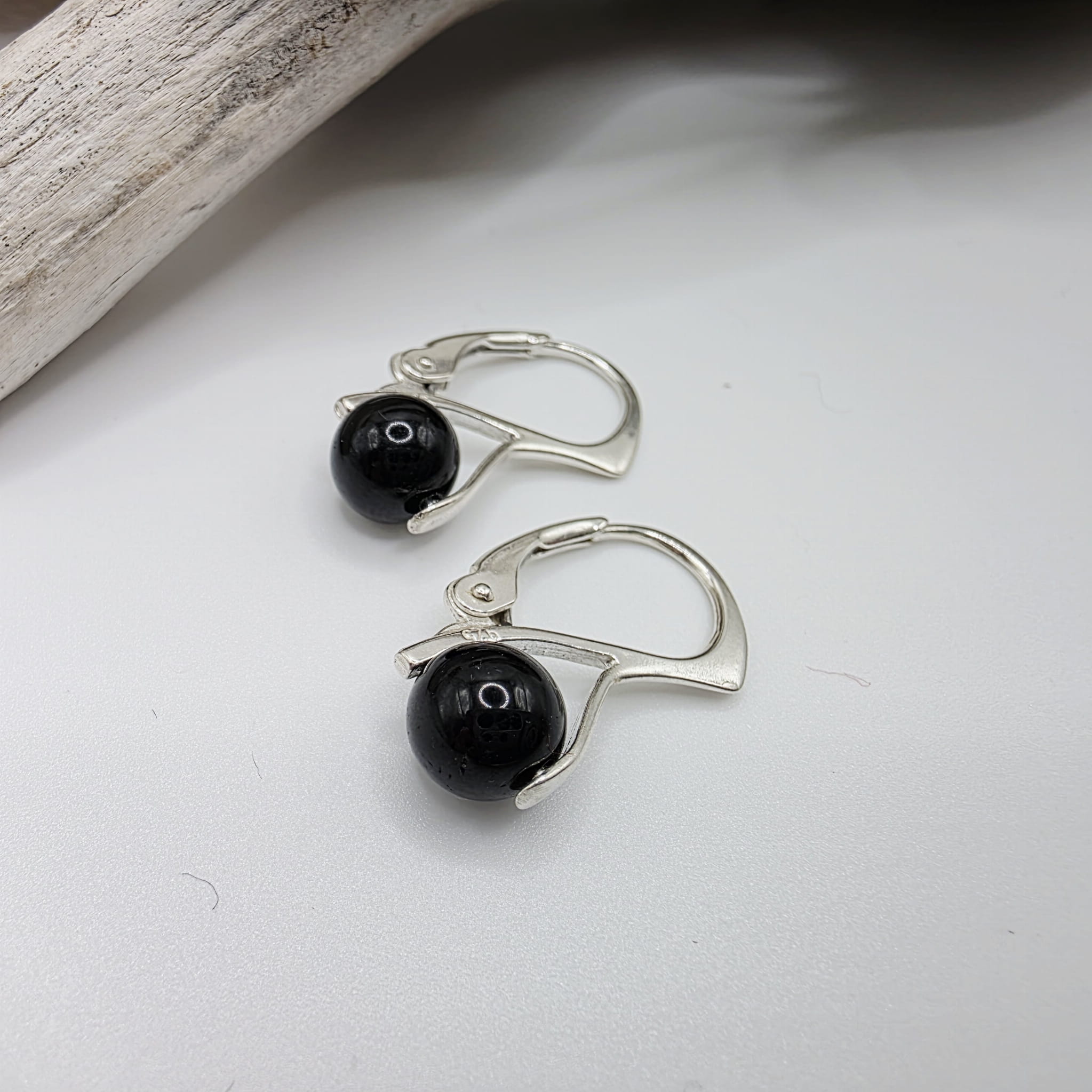 Bigle są ze srebra próby 925. Kulka czarnego turmalinu ma średnicę 6 mm.