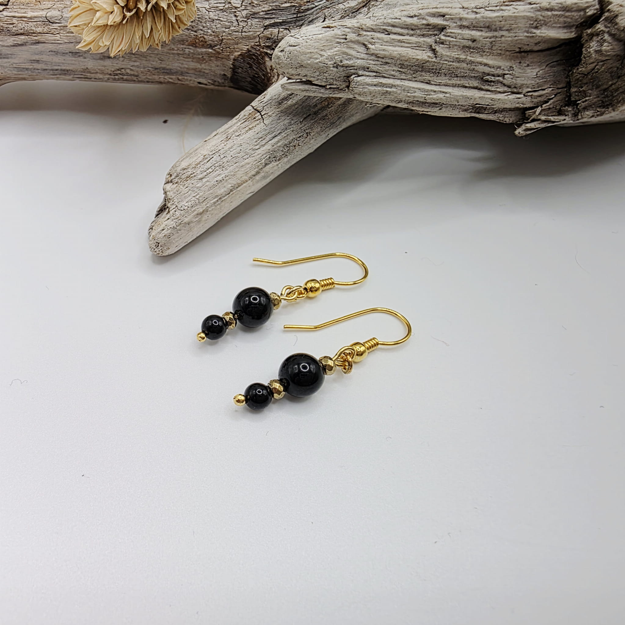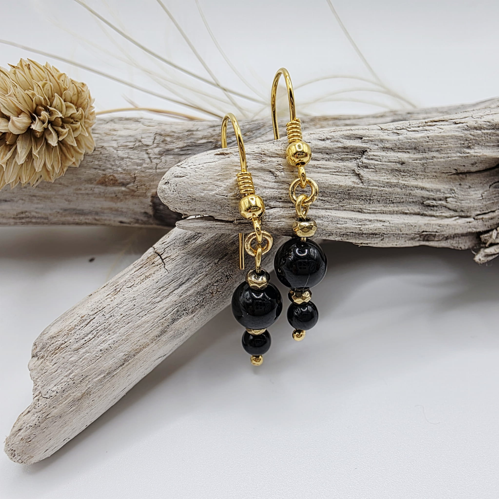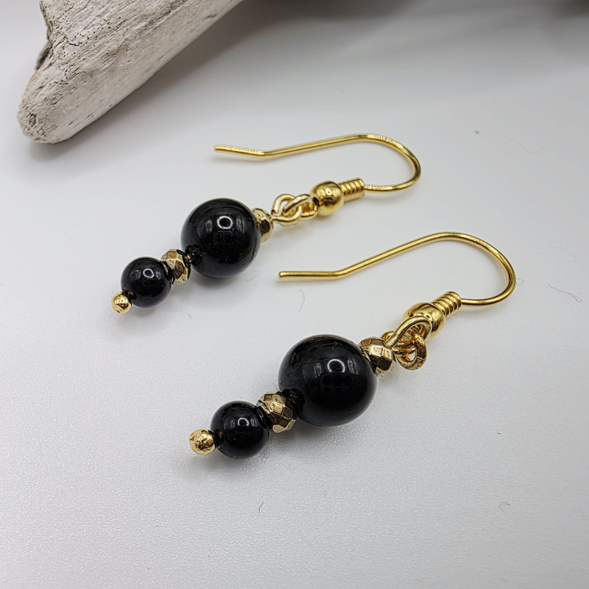 Bigle są ze srebra pokrytego 24K złotem. Kulki czarnego turmalinu mają średnicę 6 i 4 mm.